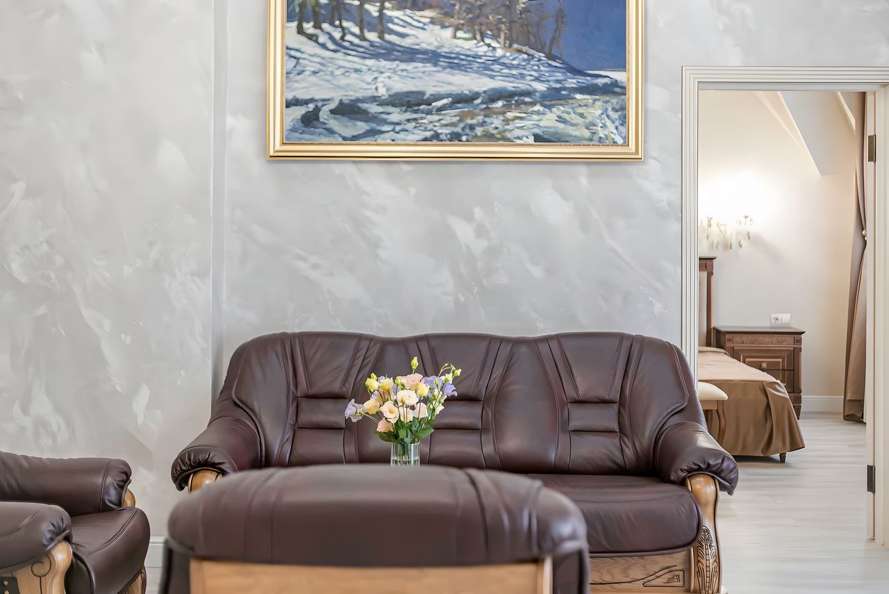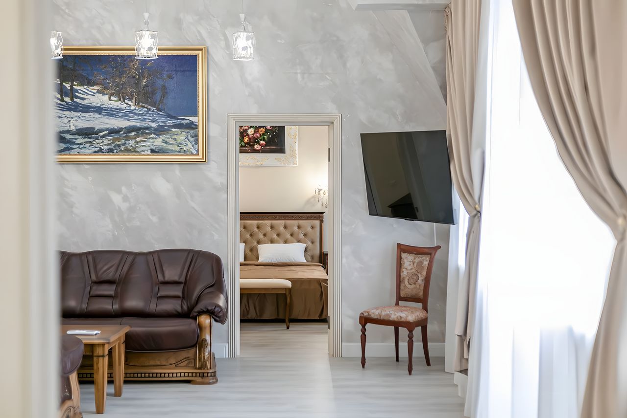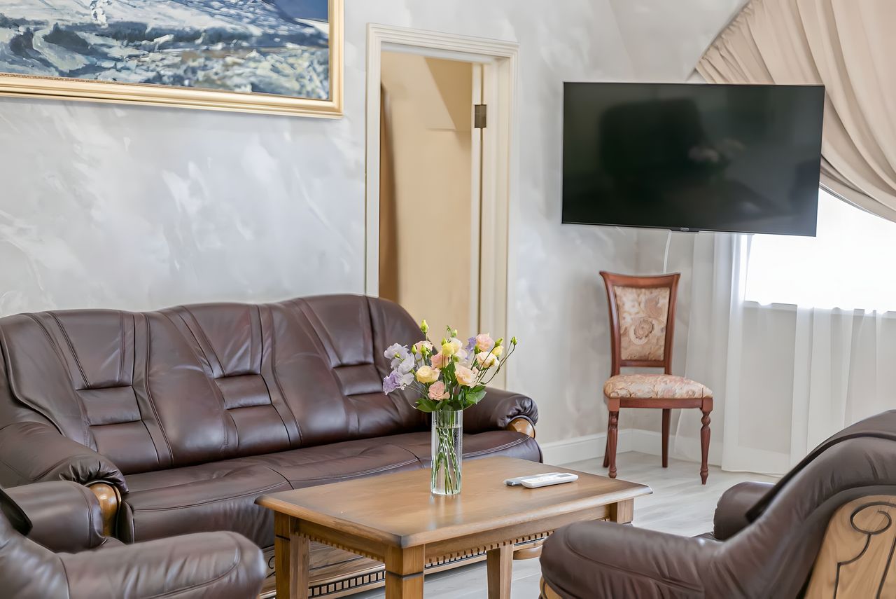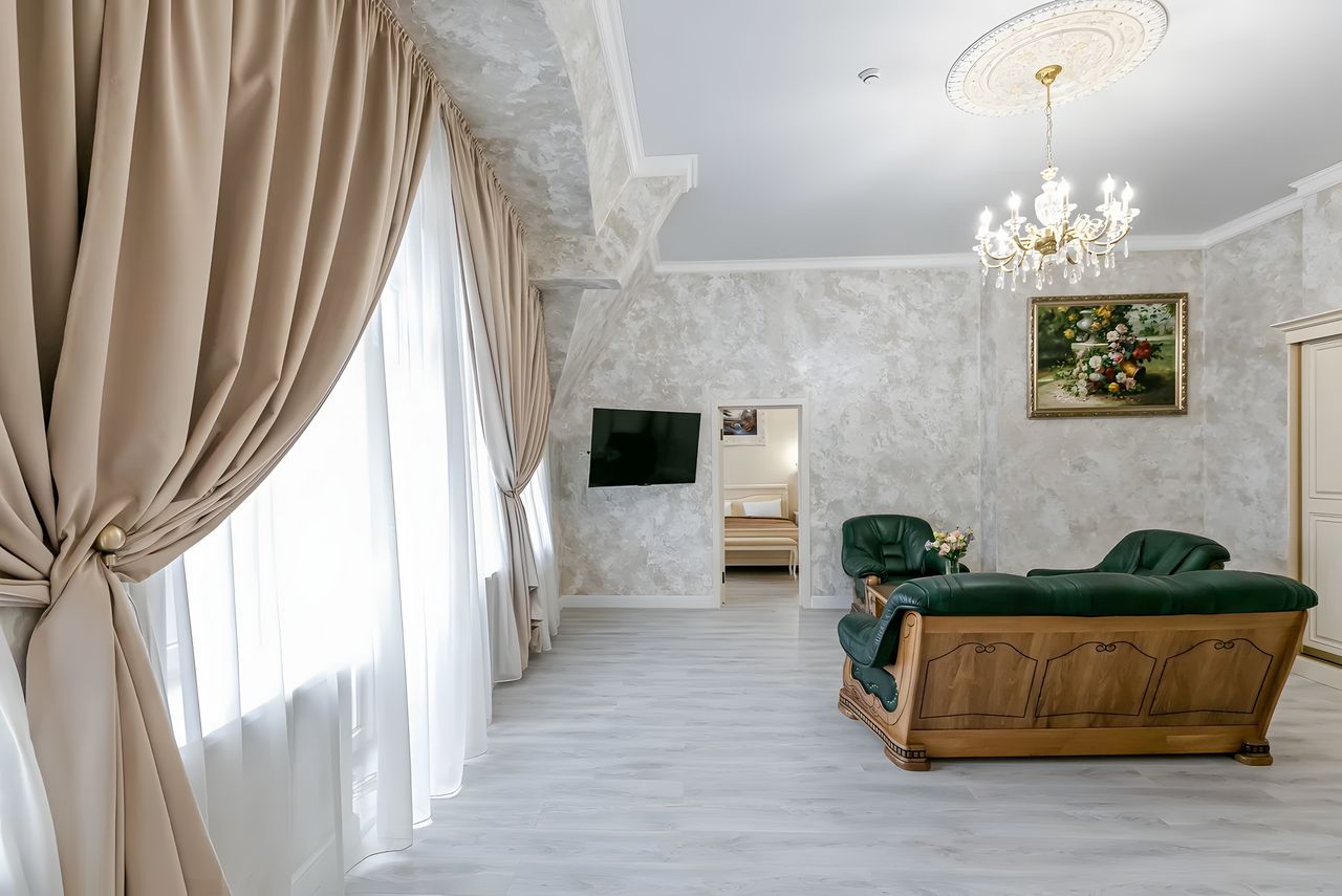 Отель «Александр» расположен в курортной зоне Кисловодска, рядом с входом в Национальный парк. В рамках сотрудничества компания «Мебель Белорусская» оформила три пентхауса: стандартный, семейный и видовой. Для проекта была выбрана мебель премиального уровня из коллекций Бристоль (классическая деревянная серия) и Лика (производство «Молодечномебель»). Дополнительно установлены кожаные диваны на деревянном каркасе Консул-2020, журнальные столы Верди и стулья из массива серии Премиум от производителя Пинскдрев.