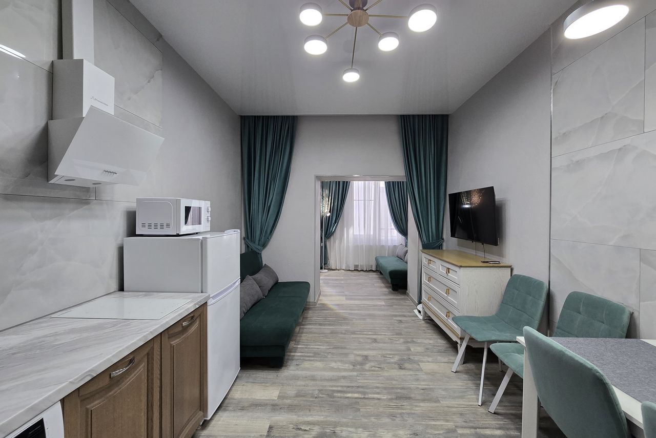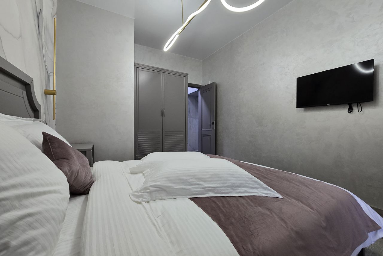 Результатом сотрудничества стали стильные и уютные апартаменты, где современный дизайн, элементы искусства и комфорт создают гармоничное пространство для гостей курортного Пятигорска